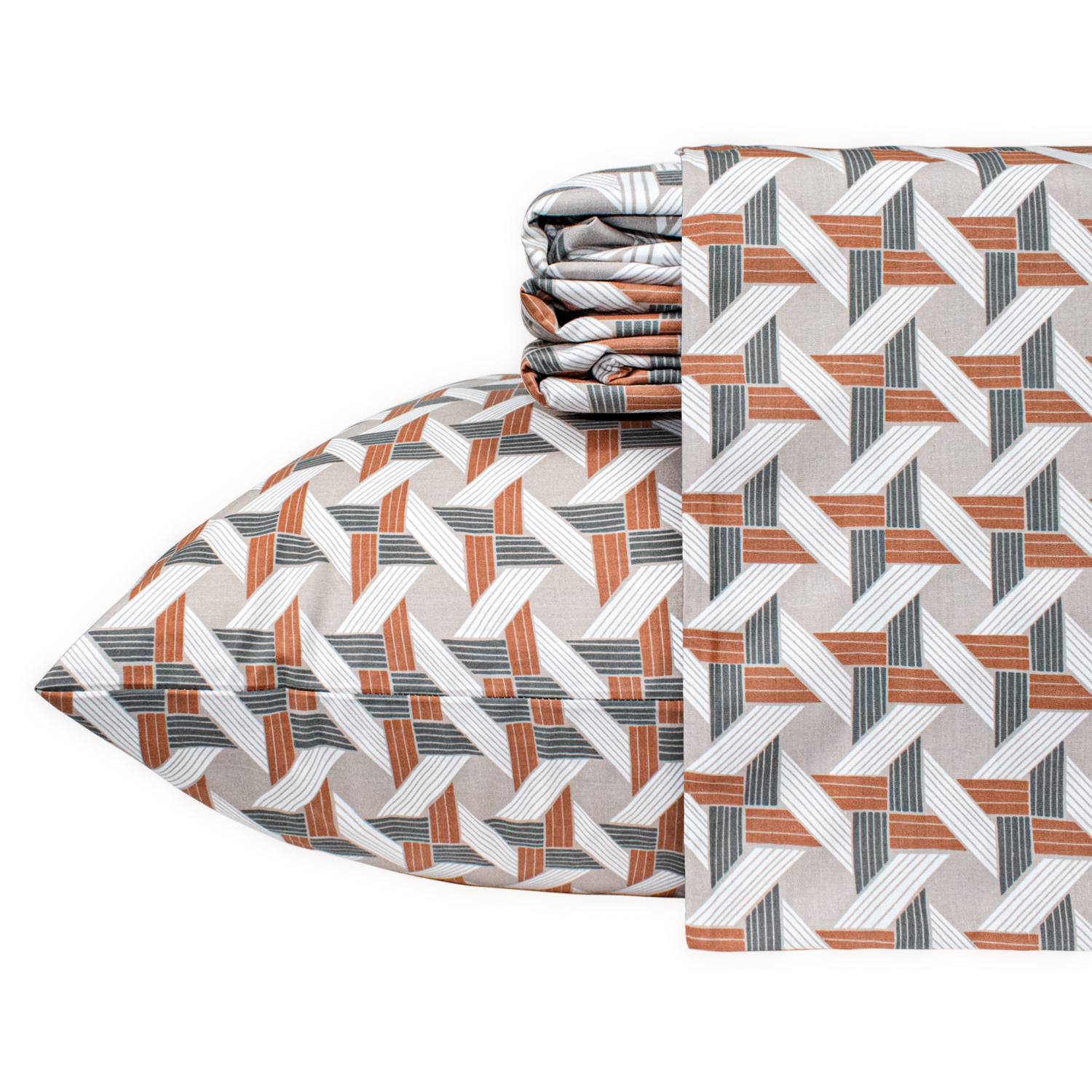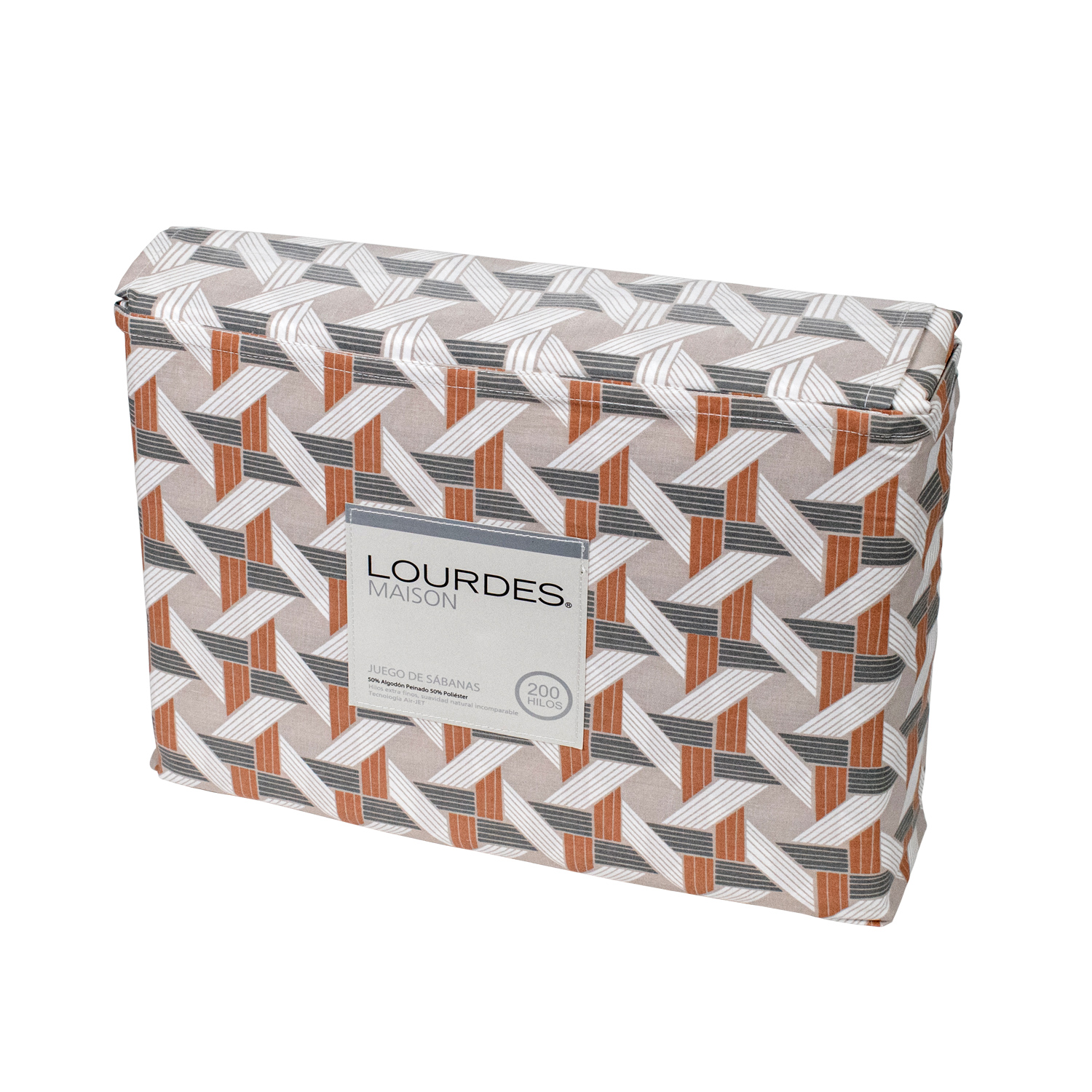 Juego de Sábanas estampadas Lourdes Maison 200 hilos. Confeccionados en telares con tecnología Air-JET, hilado fino. Por lo que se logra esta tela de excelente calidad, suavidad incomparable al tacto.