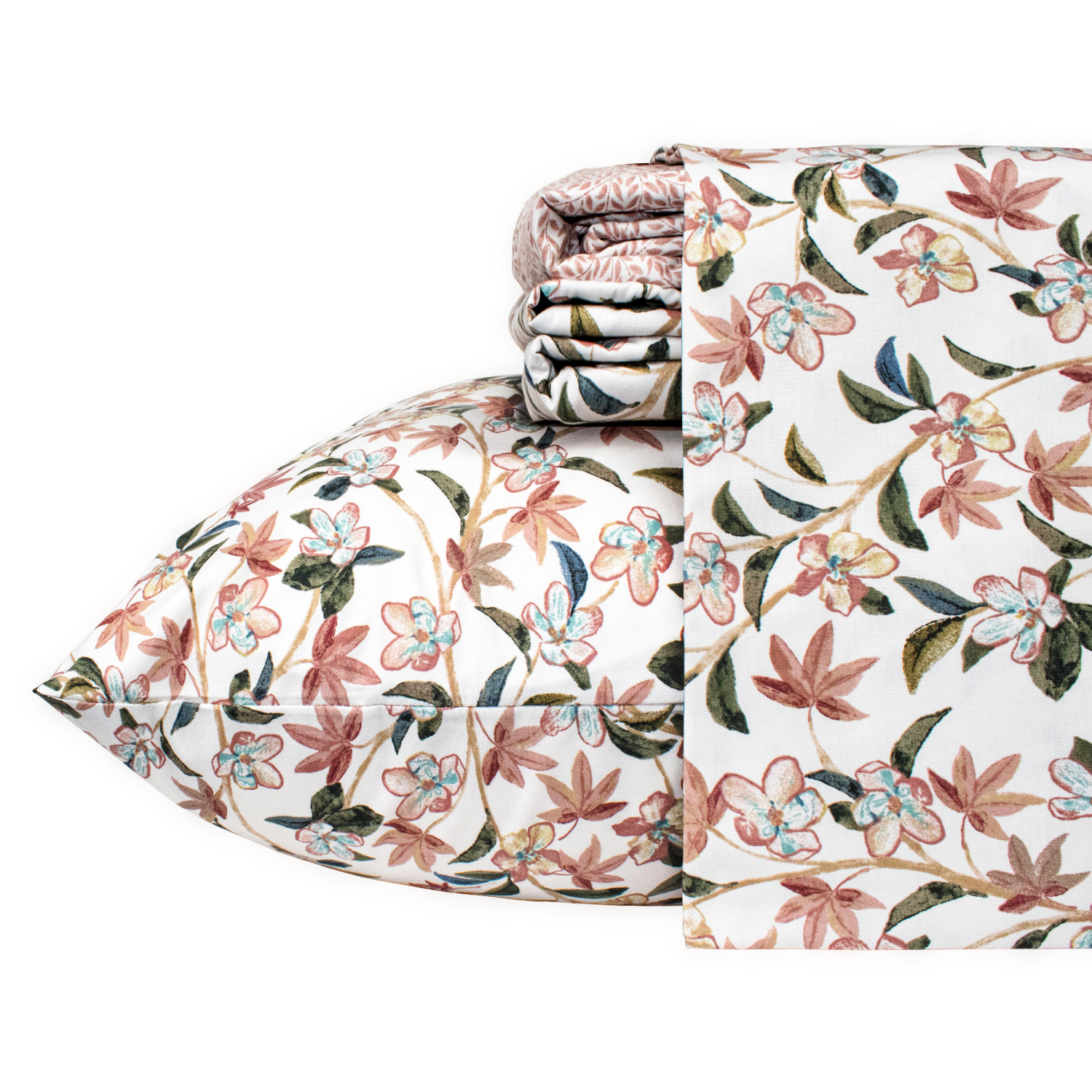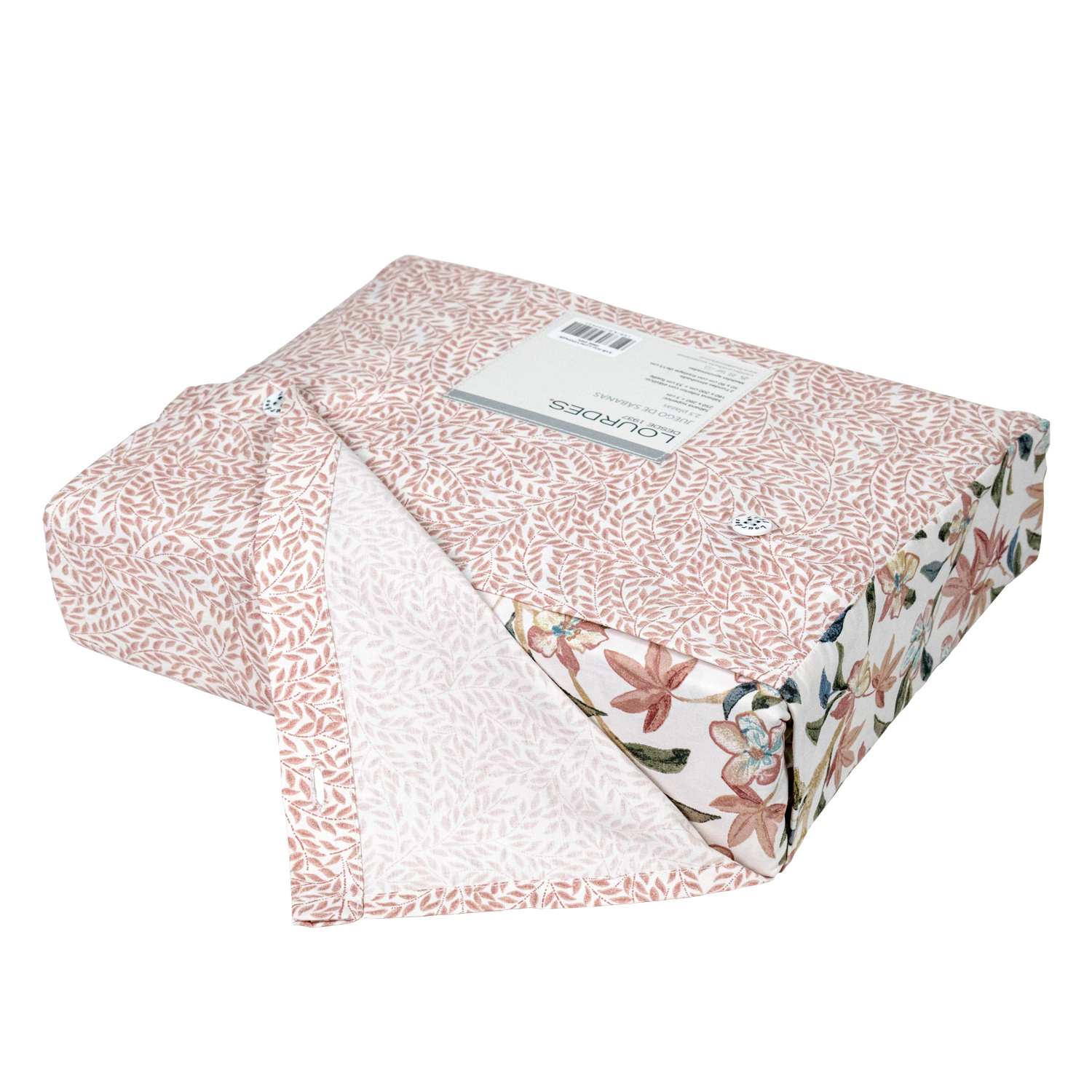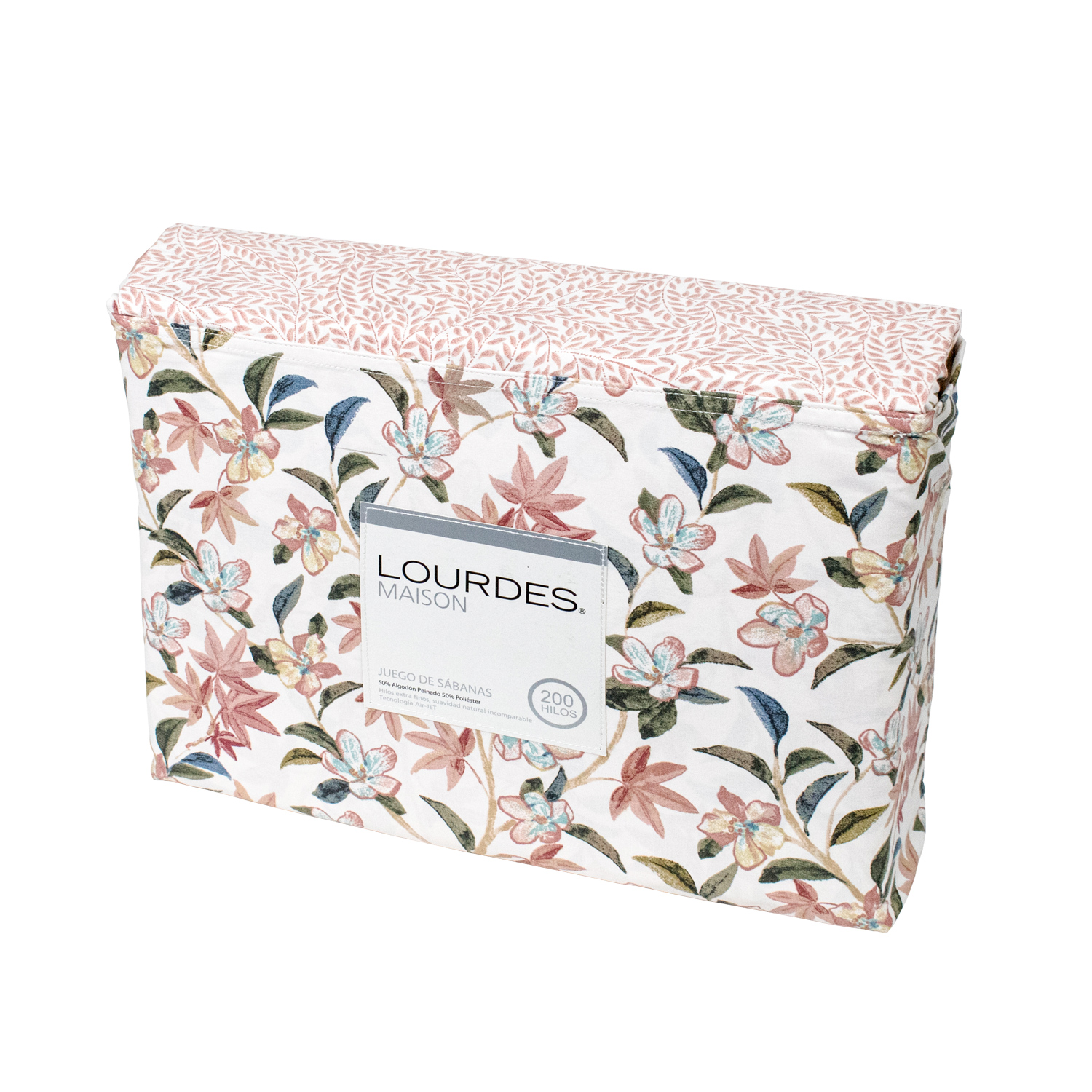 Juego de Sábanas estampadas Lourdes Maison 200 hilos. Confeccionados en telares con tecnología Air-JET, hilado fino. Por lo que se logra esta tela de excelente calidad, suavidad incomparable al tacto.