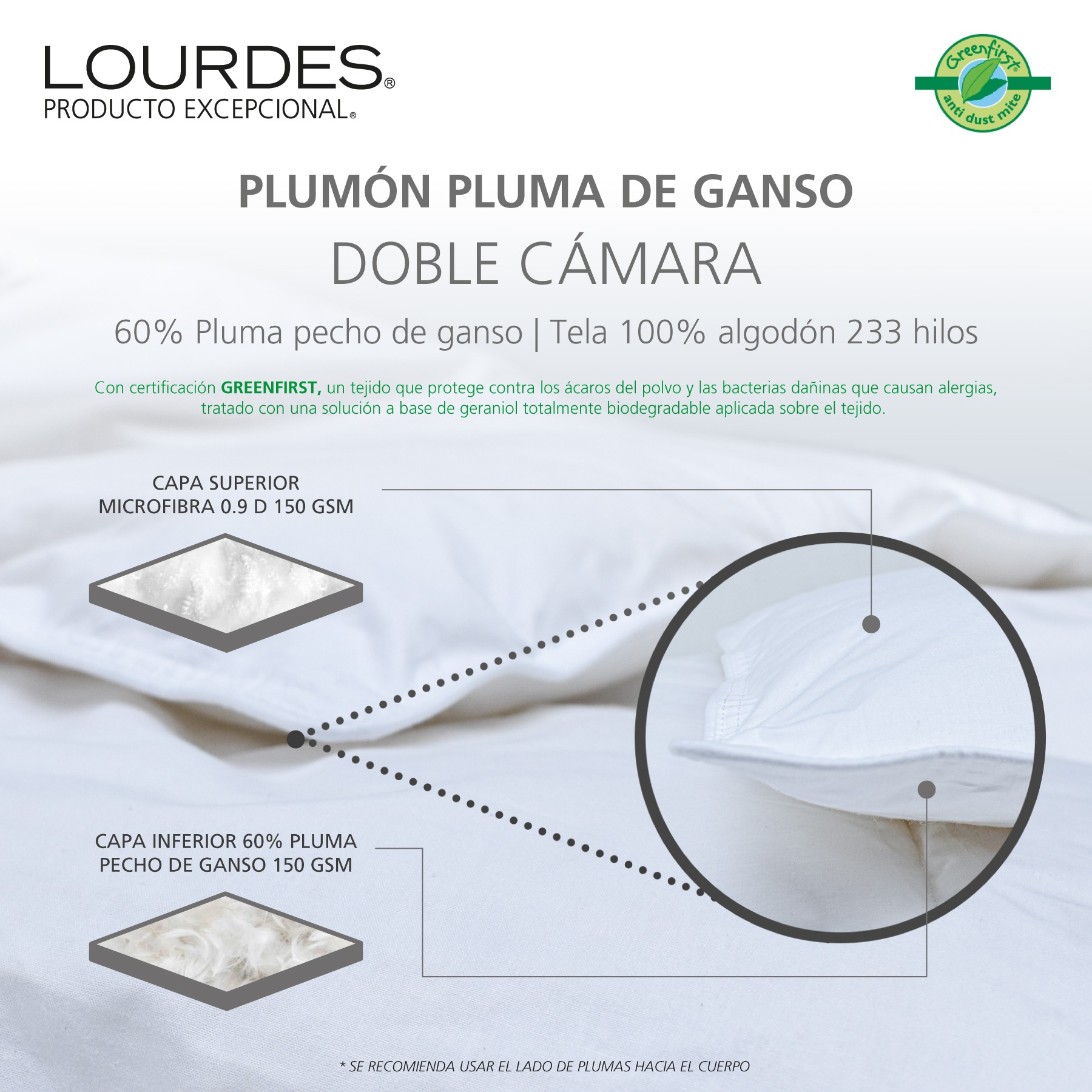 60% pluma de pecho de ganso + 40% pluma de otras partes del cuerpo. - Relleno cara superior: