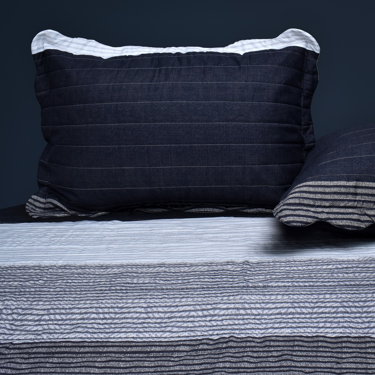 Cuenta con relleno napa de 200 gsm, ofreciendo un nivel de abrigo superior sin perder suavidad ni caída natural. Sus pespuntes pueden ser en diseño vermicelli (trazado curvo decorativo) o stripe (líneas rectas), dependiendo del modelo, lo que realza la estructura del acolchado y mejora la distribución del relleno.